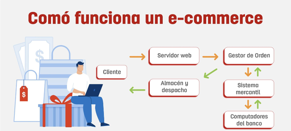 Un e-commerce combina tecnología, logística y marketing digital para ofrecer una experiencia de compra fluida. Su funcionamiento básico incluye: